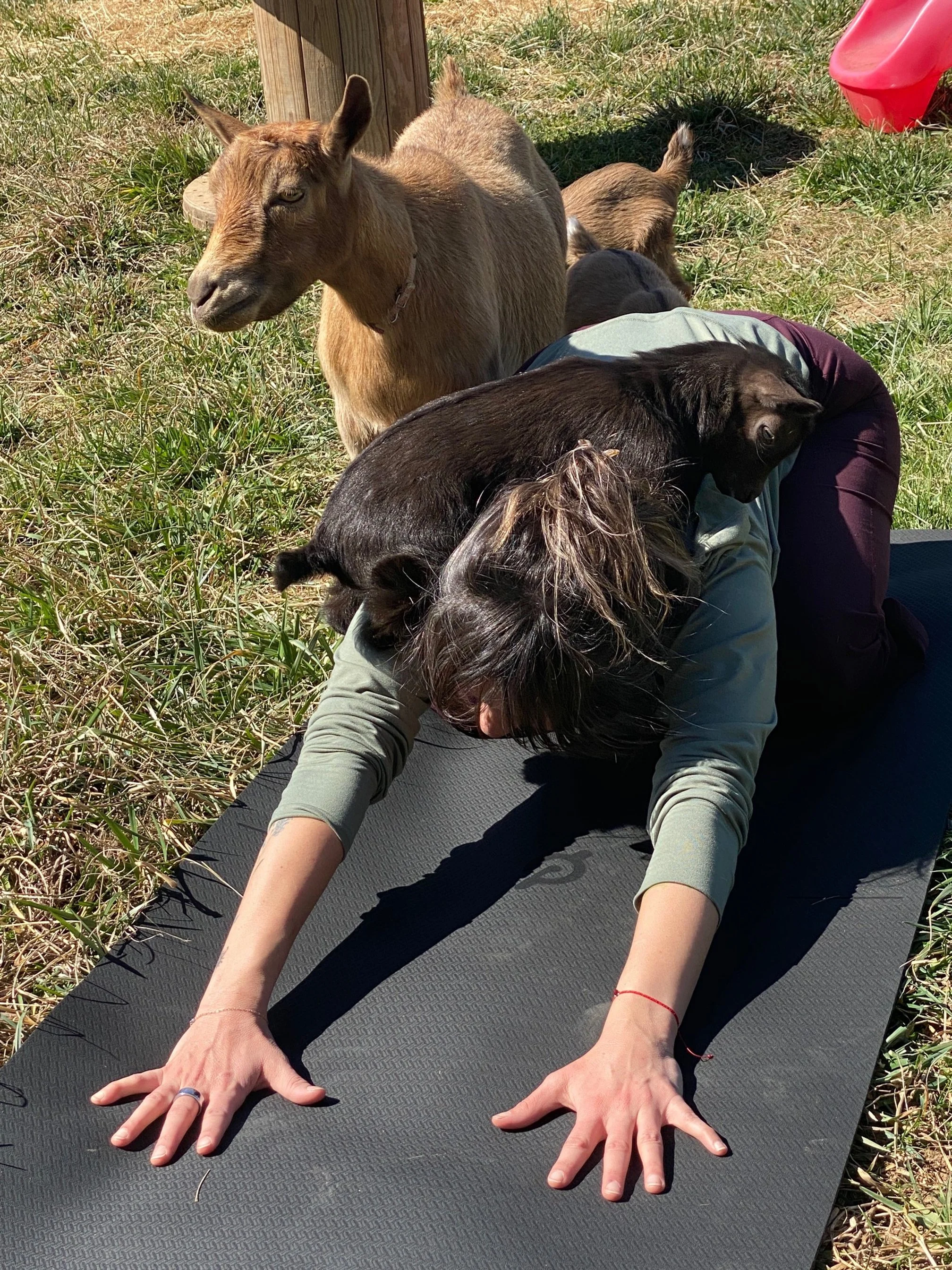 Yoga Mats Provided: Yoga mat rental is included with your class registration. O ur mats are sanitized after classes as goats can be messy( in the most adorable way).